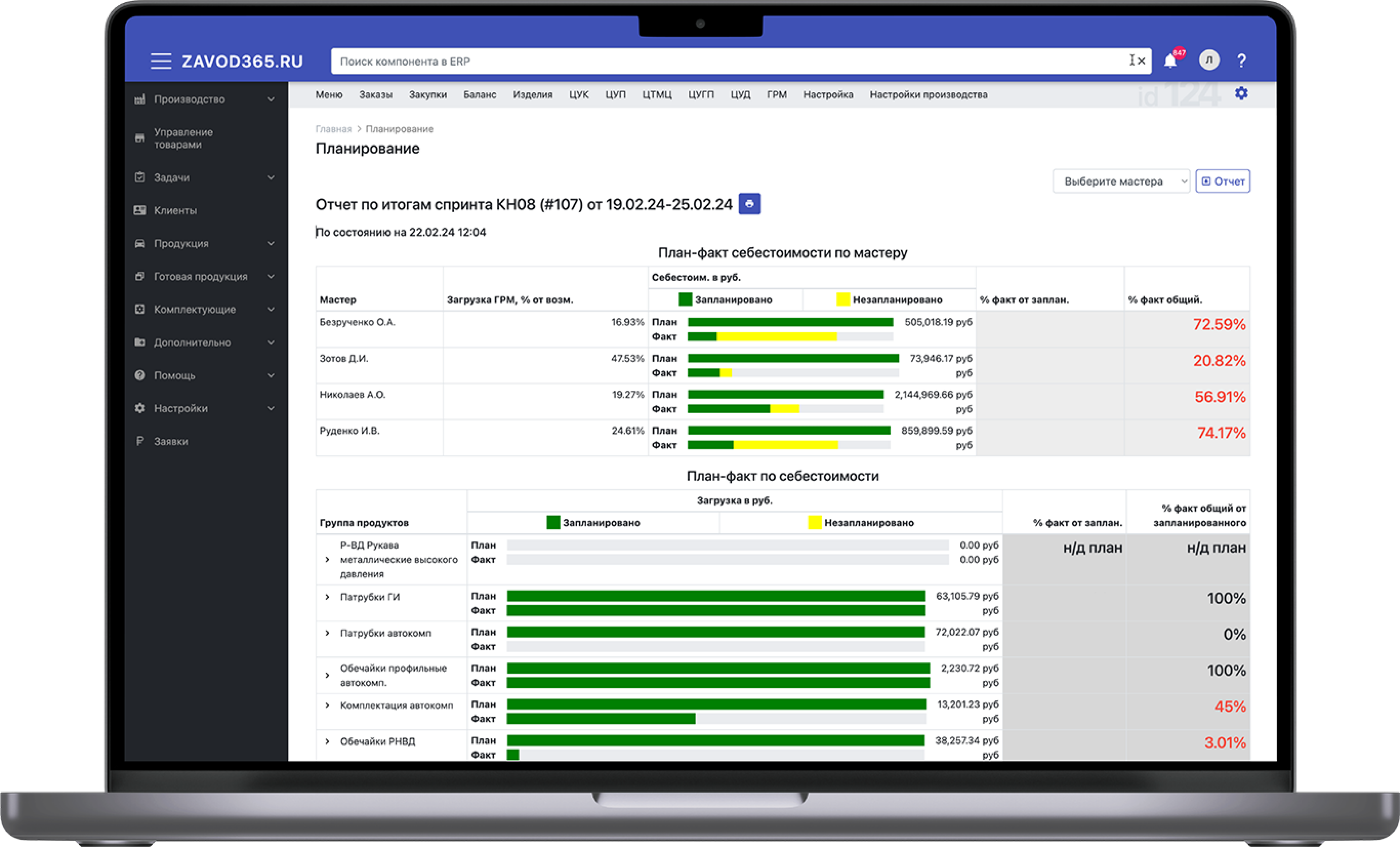 План производства, наряды рабочих, ТО оборудования, ТО оснастки, запчасти, поломки, документация, брак